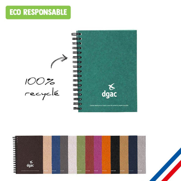 Carnet personnalisé Made in France A6 à spirales avec carton 100% recyclé