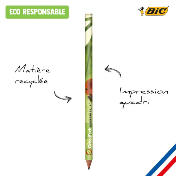 Crayon à papier personnalisable en résine synthétique, sans bois, fabriqué à partir de matière recyclée et qui ne fait pas d’écharde en cas de casse.