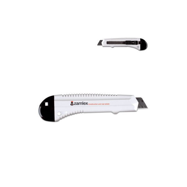 Ce couteau se distingue par ses huit lames sécables, garantissant une utilisation prolongée et une coupe toujours affûtée. En tant qu'objet publicitaire, le modèle Siga est un support de communication pertinent pour valoriser votre entreprise. Il est proposé en coloris blanc et offre deux zones de marquage possibles (Position 1, Position 2) pour apposer votre logo ou message.