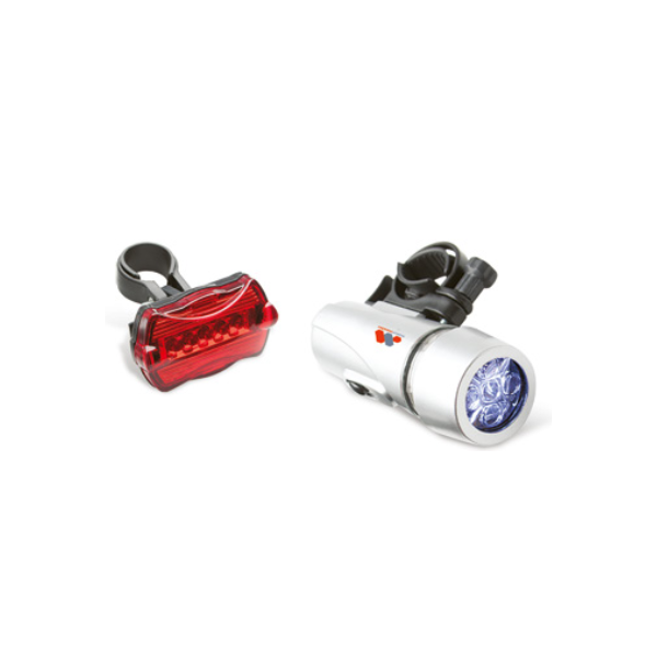 L'ensemble de lumières pour vélo LESO est un support de communication pratique et utile, dédié à la sécurité des cyclistes. Fabriqué en plastique, il se compose d'une lumière avant et d'une lumière arrière, chacune équipée de 5 LED pour une visibilité optimale. L'ensemble est livré avec des supports dédiés pour une fixation facile sur le guidon et la selle de n'importe quel vélo.