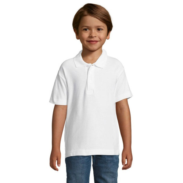 Ce polo enfant est confectionné en maille piquée 170 g/m², 100% coton peigné ringspun. Il possède un col en côte avec une bande de propreté, des manches courtes et une patte de boutonnage à 3 boutons ton sur ton.