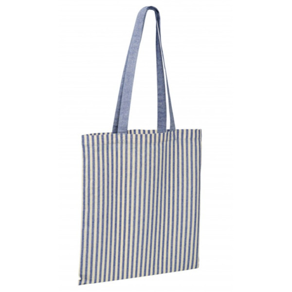 Retrouvez tous les attributs classique du sac de shopping tote bag en version rayé pour une publicité plus percutante.
