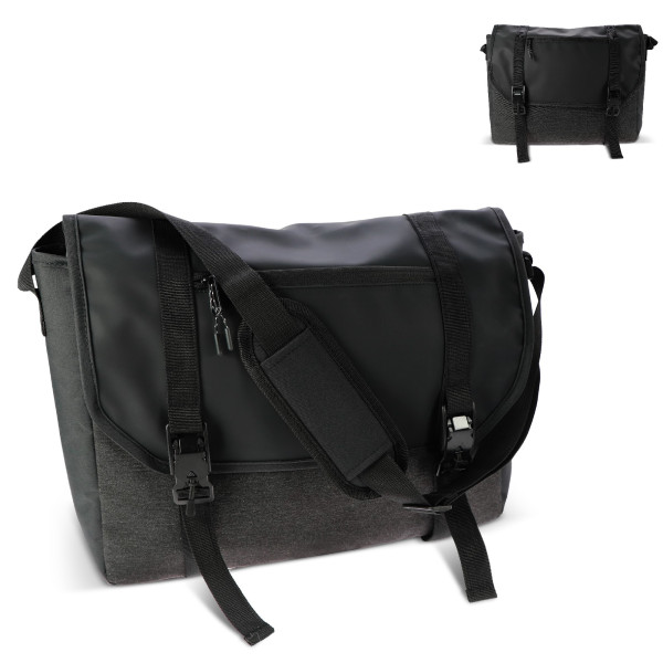 Cette sacoche personnalisée "STOF" en RPET 12L est dotée d'un compartiment rembourré pour les tablettes ou ordinateur.