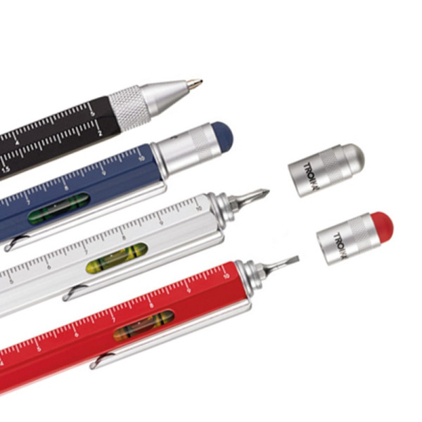 Avec une règle (en centimètres et en pouces), un niveau à bulle, un tournevis plat et cruciforme et un stylet, ce stylo d'une grande finition est un grand classique, proposé également en magasin.