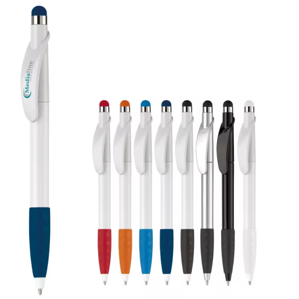 Le stylo bille ZUVU représente l'alliance parfaite entre fonctionnalité et esthétique pour vos campagnes de communication. Conçu en ABS, un matériau léger et durable, ce stylo intègre un design moderne signé Toppoint, caractérisé par son clip courbé et un grip en caoutchouc pour une prise en main agréable. Sa particularité réside dans sa double fonction : un stylo bille à mécanisme twist avec écriture bleue, et un stylet intégré, idéal pour interagir avec les écrans tactiles.
